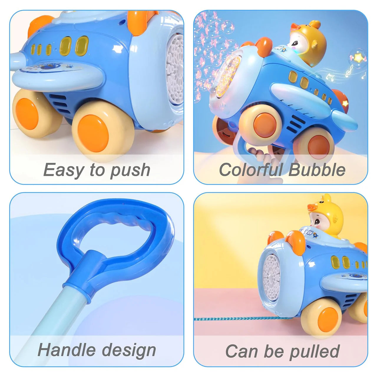 An exciting push-and-play airplane toy that releases loads of bubbles as kids move it forward. Simple to use, durable, and perfect for outdoor fun, keeping children active and entertained