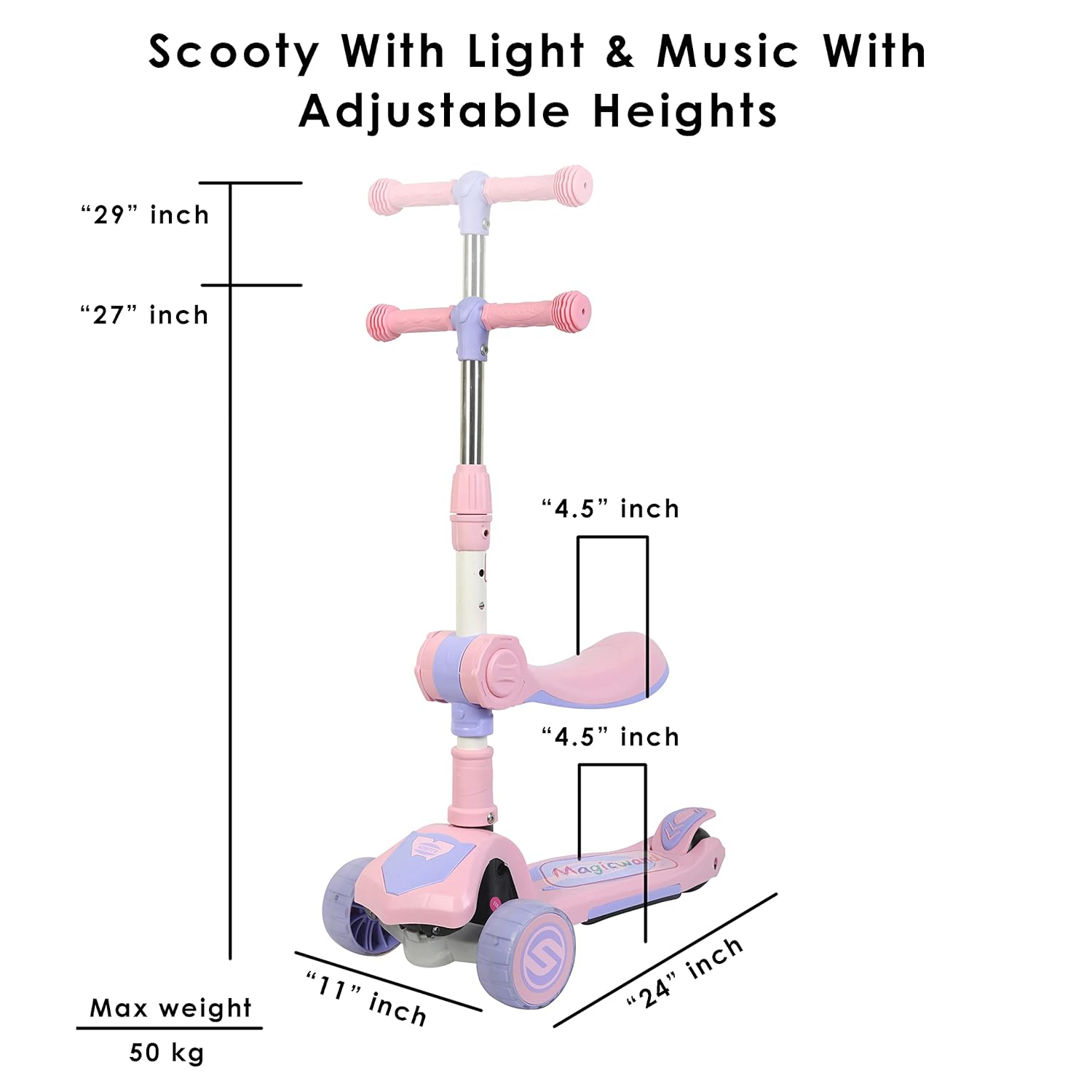 Magicwand Foldable 2-in-1 Sit & Stand Wide Platform Height Adjustable Kick Scooter for Kids with Foldable Seat,Lights & Music